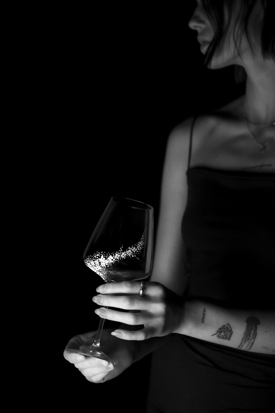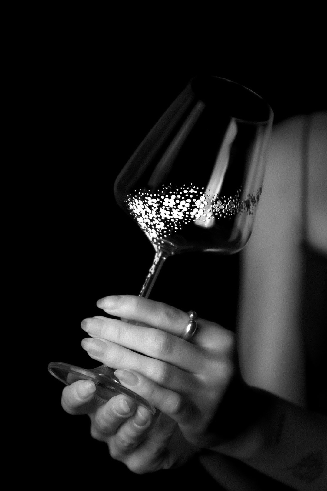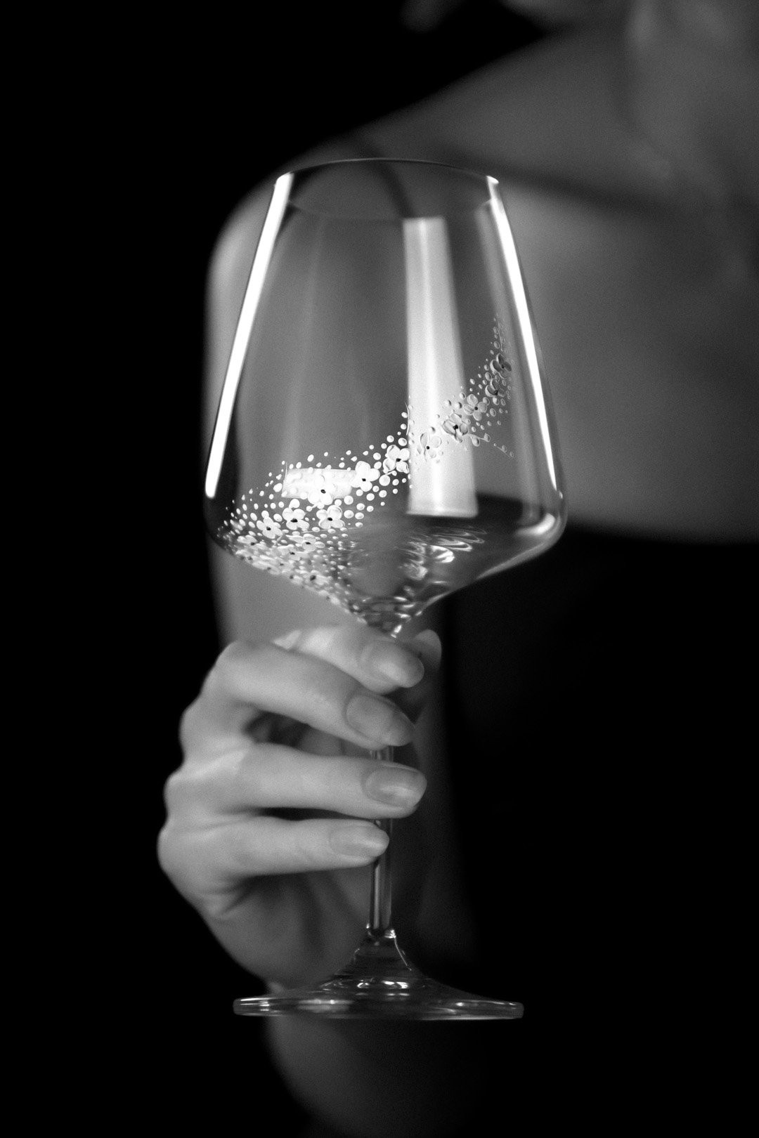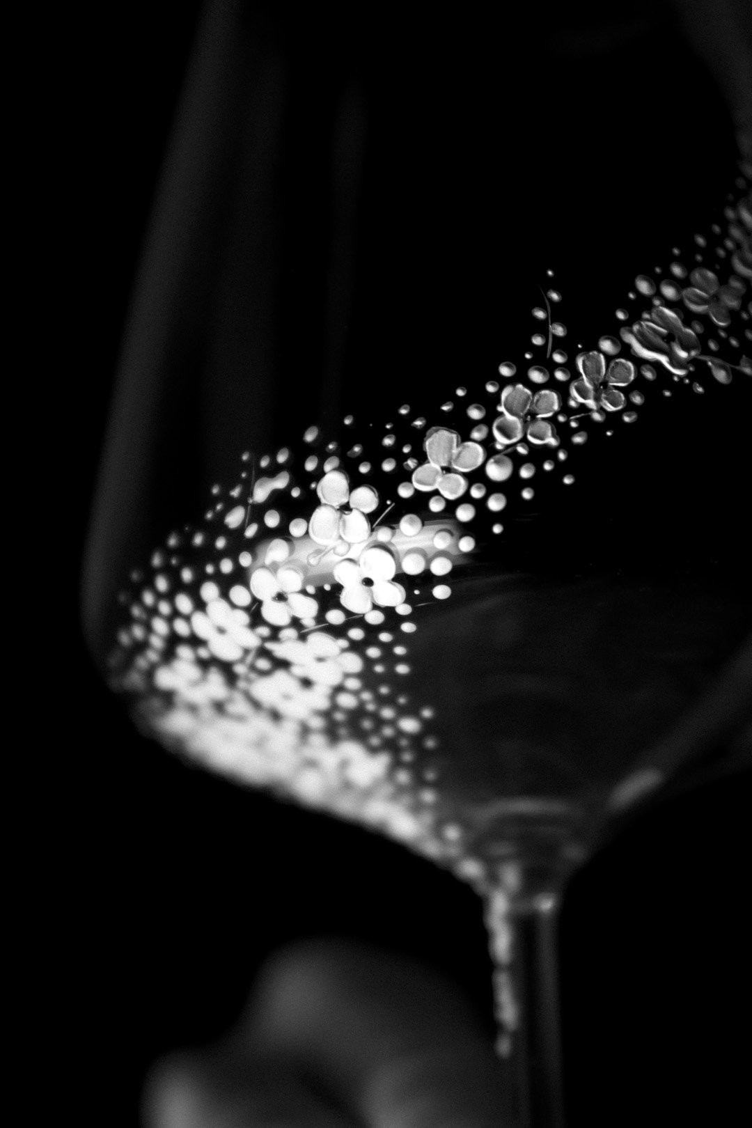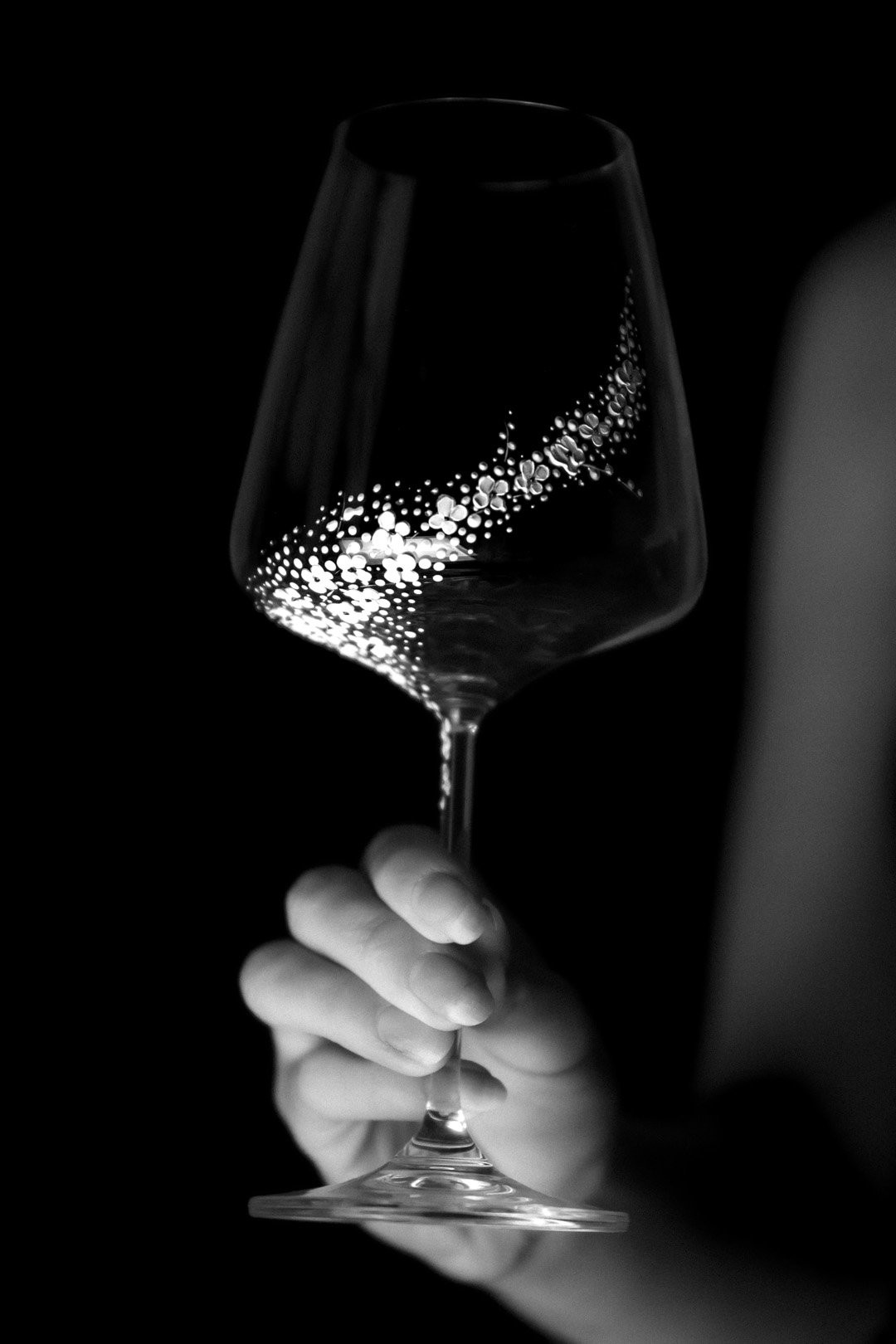 Sklenice na víno Veil white je zdobena jemnými bílými květy, které jsou ručně malovány trvalým smaltem a vytvářejí elegantní design. Tato nádherná dekorace jemně rozsplývá podél sklenice a nabízí dotek rafinované krásy při pití.