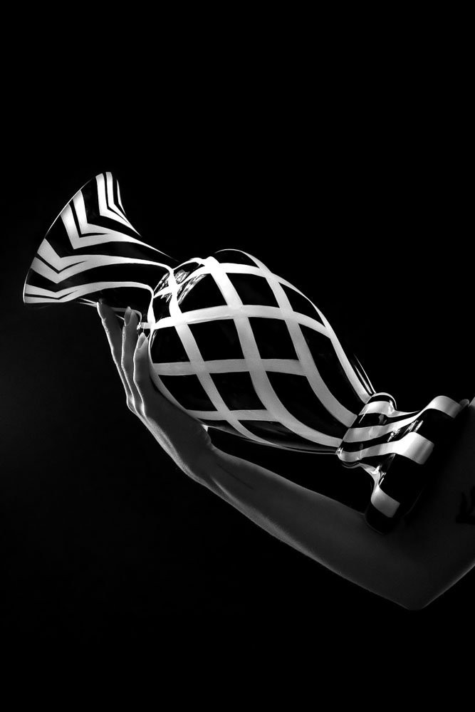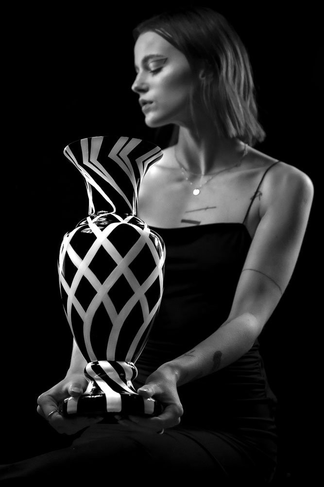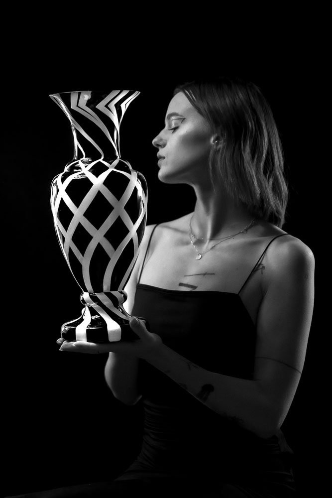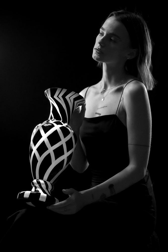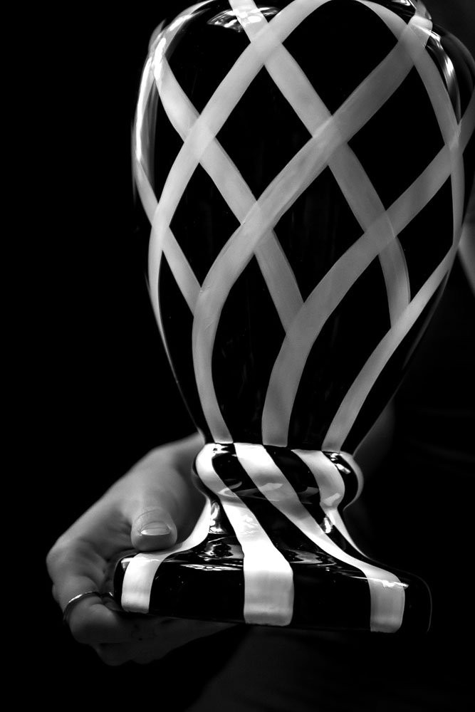 Vytvořte si pomocí české designové vázy nadšasový interiér. Ručně foukaná váza v temně černé barvě a má na výšku až 40 cm. Její velkou výhodou je, že i bez květin poutavě vyniká na zvoleném místě. Vortex byl inspirován vodním vírem. Bílý dekor, jako její doména, je ručně točivě malovaný od spodní až k horní části vázy.