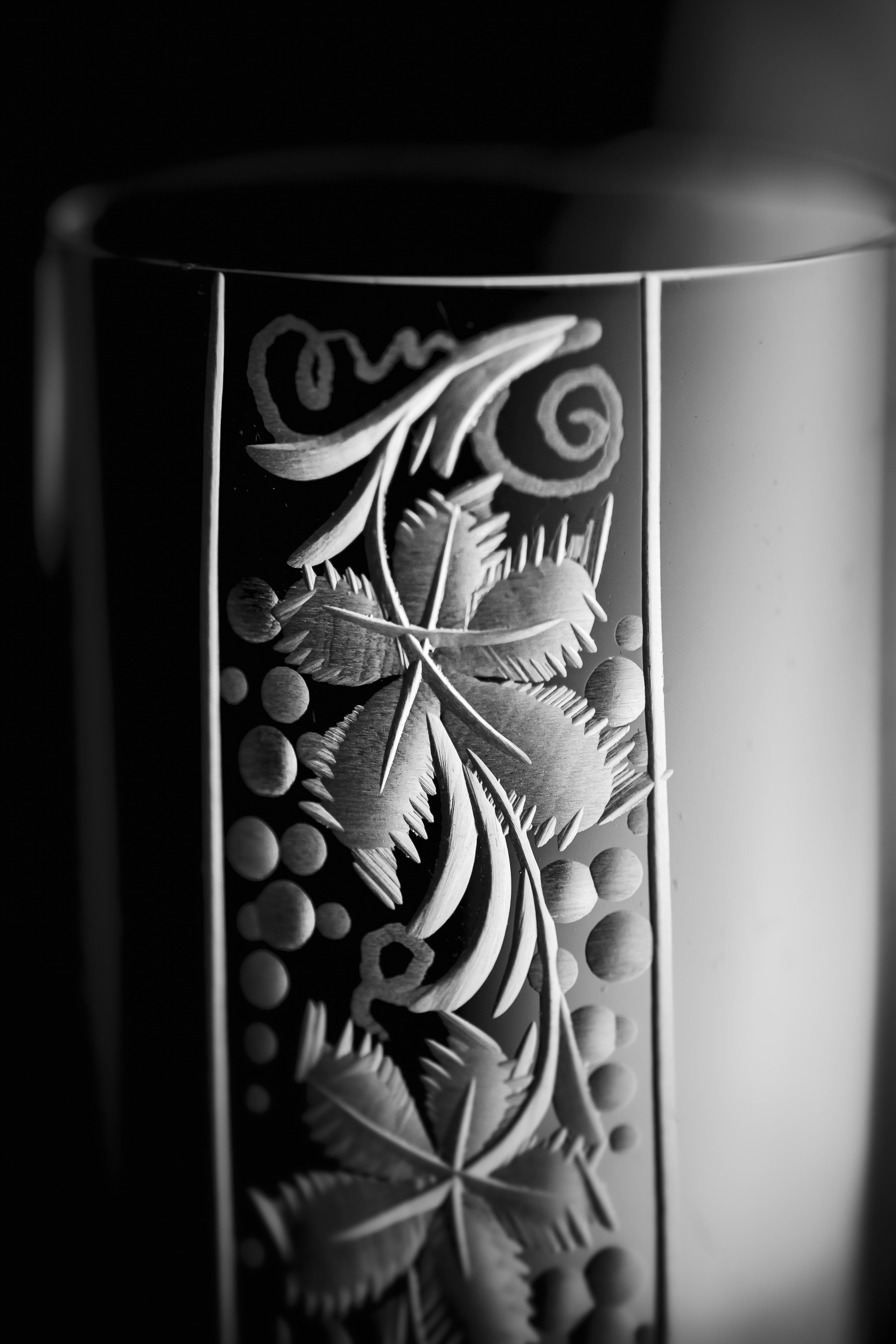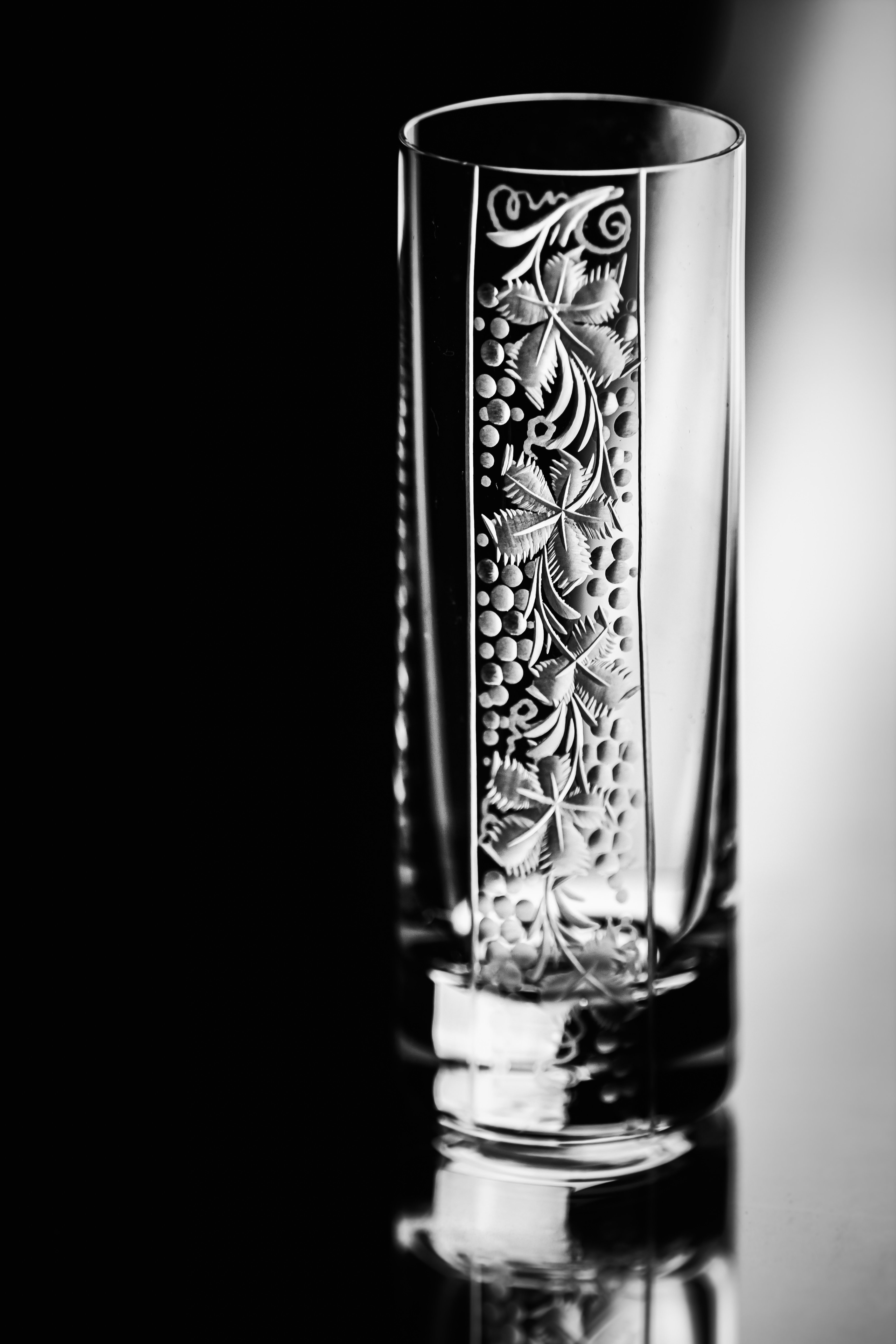 Sklo: Čiré, Ručně ryté, Bezolovnatý český křišťál